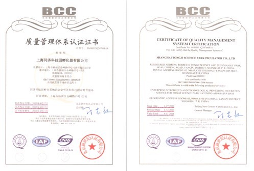 上海同济科技园孵化器有限公司在连续三年有效运行ISO质量管理体系之际,迎来了第三次监督审核,并鉴于获取的质量管理体系证书于2013年4月26日到期,再认证工作与监督审核一并于3月16日、17日接受了北京新世纪认证有限公司(BCC)对公司质量管理体系的全面检查,顺利通过现场审核以及资料评定,于4月12日成功获得BCC质量管理体系认证,这标志着公司质量管理体系三年来完善、有效,满足GB/T19001-2008/ISO9001:2008标准的要求,对同济科技园孵化基地的企业引进和科技创业孵育服务有着重要的指导作用。