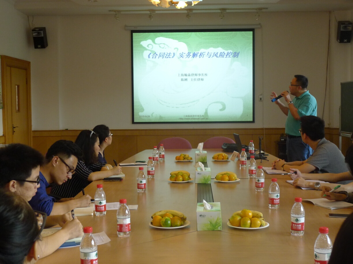 9月24日下午,园区中小企业在市场营销中的法律实务讲座在赤峰路孵化基地202会议室举行。讲座特邀上海翰森律师事务所合伙人、主任律师、同济科技园合作法律顾问陈刚律师莅临园区授课,吸引了近10位企业相关人员参加。陈律师详细全面的讲解了合同的订立、合同的形式、合同的效力、合同的履行等法律知识,并通过提问和案例分享等互动方式引导学员思考。