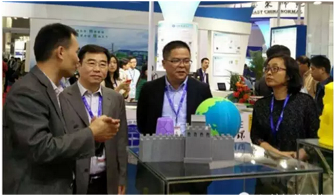 2015年工业博览会期间教育部领导在市教委的陪同下参观迈济公司展台
