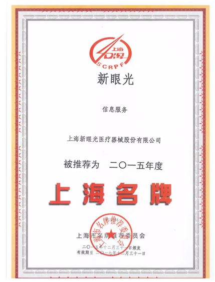 喜讯!我园区创业企业上海新眼光医疗器械股份有限公司荣获“2015年度上海名牌”称号!据了解,2015年度“上海市名牌推荐委员会通告”在《解放日报》的公示中,共有472项产品、178项服务和11项明日之星上榜。新眼光公司荣获信息服务推荐名牌。