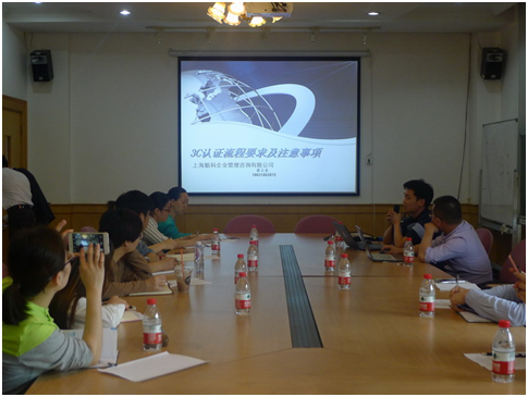 课上,霍老师分别就CCC认证最基本常识及操作流程、ISO认证最基本常识及操作流程、CE认证最基本常识及操作流程向学员们进行了详细地介绍,授课期间结合生动翔实的案例,以帮助学员更为有效的掌握要领。互动环节中,学员们结合自身企业特点,向老师进行了提问,均一一得到了详尽解答。整个培训内容全面,实用性强,得到了与会学员的一致好评。
