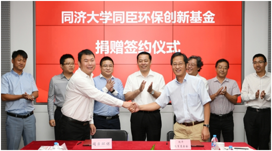 9月19日上午,同济大学同臣环保创新基金捐赠签约仪式在同臣环保蓝色创想厅举行。同济大学党委书记杨贤金,副校长吴志强,原副校长、环境学院奖励金联合理事会理事长赵建夫,同臣环保董事长张文标及高管团队出席。仪式由吴志强副校长主持。同济大学党办、外联办、资产经营公司、招办、环境学院等部门负责人参加。