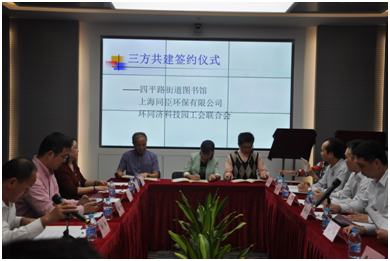 为深入学习型园区建设,同济科技园区杨浦基地党总支、环同济科技园工会联合会依托同臣环保公司工会,在同臣环保与四平路街道图书馆共享建立环同济科技园区职工书屋,以满足园区广大职工的学习需求。四平路街道图书馆馆长刘美英、环同济科技园工会联合会工会主席周卫、上海同臣环保有限公司工会主席陈亦军作为三方代表签约,由四平路街道图书馆向职工书屋提供图书,合作开展职工文化读书活动,不断满足广大职工精神文化需求,共建环同济科技园区职工书屋。