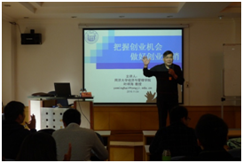 开班仪式上,高国武总经理发表讲话,他首先介绍了同济分基金自2006年成立以来的发展历程,从历届培训班中走出的创业佼佼者,对优秀的大学生创业企业如数家珍。接着,高总为在座有创业想法的同学们打了一剂“预防针”,告诉大家创业路上的艰辛远比大家想象中艰难得多,希望大家创业前要清楚思考“为什么创业”、“如何创业”以及“创什么业”。最后高总为大家打了一针“强心剂”,他鼓励大家不要怕困难,不要轻言放弃。在创业路上大家并不是孤军作战,有同济科技园孵化器的各种资源和优惠政策可以帮助大家,也有同济分基金已经成立企业的师兄师姐一路扶持大家,同济分基金的大学生创业企业饮水思源,感恩母校和分基金,联合捐款110万元用于设立同济大学生创业互助发展基金,帮助同济分基金的大学生创业企业发展。同济分基金、同济科技园孵化器以及科创联的师兄师姐们都是大家创业的坚强后盾。