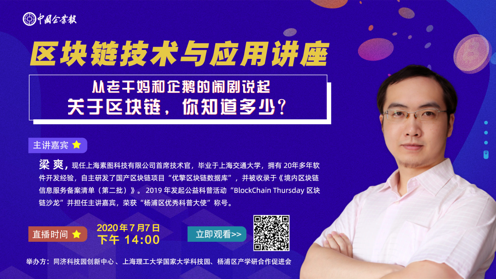 【活动通知】区块链技术与应用讲座,7月7日下午2点直播!我们等你!