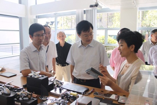 诸葛区长一行首先参观了环同济设计产业公共服务平台--柔性设计馆,馆长张霁婷向各位领导详细介绍了柔性设计馆的概念、经营理念和运营模式,诸葛区长对这一极具特色和针对性的平台概念以及服务内容大加赞赏