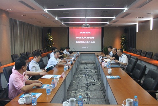 在随后的座谈会上,同济科技园常务副总钱学标详细汇报了环同济知识经济圈和同济科技园的发展概况、产业特色以及在推进科技创新等方面取得的成绩,肖小凌总经理就科技园现阶段发展中存在的困难特别是载体瓶颈问题向诸葛区长做了简单汇报;同济大学产业办高国武主任向诸葛区长介绍了同济大学在推进学校科技成果转化、推动科技园区发展方面所做出的努力。诸葛区长充分肯定了同济科技园近年来取得的成绩以及在环同济设计产业集群建设和推动区域经济发展方面做出的贡献,并就进一步加强区校合作、深入推动“三区融合、联动发展”以及科技园区自身的发展等方面提出了宝贵建议。诸葛区长表示同济科技园一直是杨浦区科技园区的发展重点,环同济知识经济圈的产业集群业已形成,杨浦区政府将一如既往的加强区校合作,各职能部门将进一步提高服务水平,为学校技术成果转化和园区发展提供动力,同时也希望同济大学和同济科技园在未来能够进一步推动学校的科技成果转化,提升园区服务品质,推动资源整合及对接,从而促进园区及园区企业的发展,为区域积极发展做出相应的贡献。